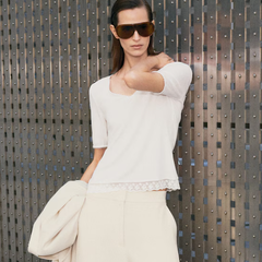 COS 蕾丝饰边罗纹V领T恤