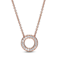 Pandora 14K玫瑰金镀层锆石吊坠项链