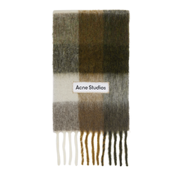 迪丽热巴同款!Acne Studios 卡其米白格纹流苏围巾
