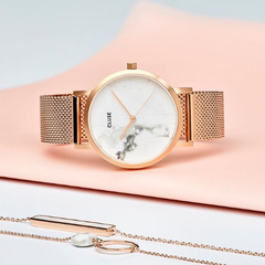 Cluse La Bohème Mesh系列玫瑰金白盘手表