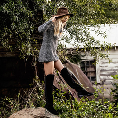 【中亚Prime会员】Chinese Laundry Riley Split 女款仿麝皮拼接过膝长靴