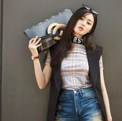 张天爱时尚大片同款 Versus 格纹上衣