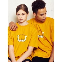 加菲猫脸印花圆领短袖T恤_黄色