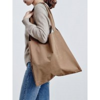 双层拼接开口女士环保购物单肩包_棕黄色/黑色