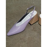 [知名博主gogoboi*]尖头梯形中跟凉鞋_紫罗兰/白色/砖红色