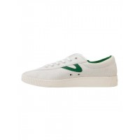 拼接系带平底帆布鞋_米白色+绿色