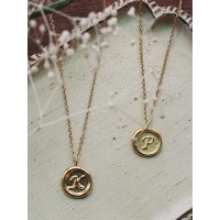 字母刻印圆片吊坠女士项链_镀黄金