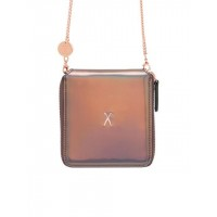 正方形镜面拉链可斜挎女士钱包_棕色