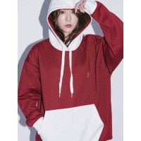 双色拼接刺绣时尚百搭男女同款连帽卫衣_红色