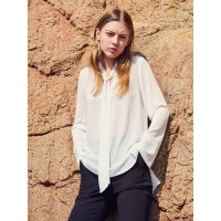 宽松时尚领口系带侧边开叉女士雪纺衬衫_白色