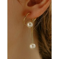 时尚条棒珍珠女士长耳环_金色