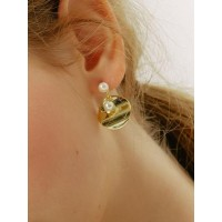 *型方片珍珠吊坠女士耳环_金色