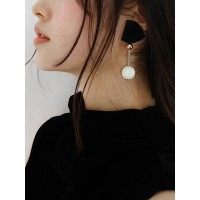 Black Holiday系列圆珠直条拼接吊坠女士长款耳环_金色