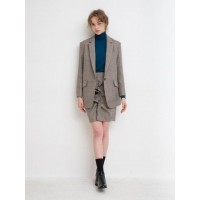 [Lizzy明星原款]宽松格纹翻领单粒扣女士休闲西服_米色