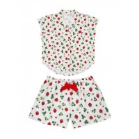可爱图案翻V领短袖短裤女士睡衣套装_象牙白