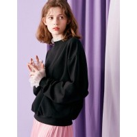 优雅颈部袖口拼接装饰女士圆领卫衣_黑色