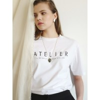 休闲ATELIER字母女士短袖T恤_白色