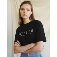 休闲ATELIER字母女士短袖T恤_黑色
