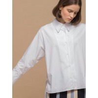 宽松拼色走线前短后长侧开叉女士衬衫_多色