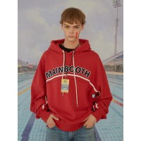 基本款插肩袖LOGO刺绣男女同款连帽卫衣_红色