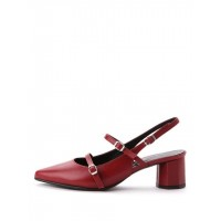 [知名博主gogoboi*]尖头浅口双搭扣带*露跟单鞋_红色