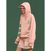 宽松落肩字母刺绣贴布女士连帽卫衣_粉色