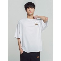 宽松落肩字母刺绣日历印染男女同款圆领短袖T恤_白色
