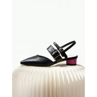 粗细双搭扣带拼色粗低跟*女士露跟单鞋_黑色