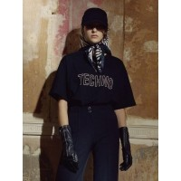 圆领字母印刷LOGO刺绣男女同款短袖T恤_黑色