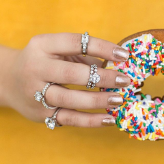 双层钻石装饰银戒指