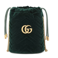 GUCCI GG Marmont 迷你绿色丝绒水桶包