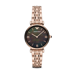 Emporio Armani 阿玛尼新款玫瑰金钢带手表女墨绿色手表女