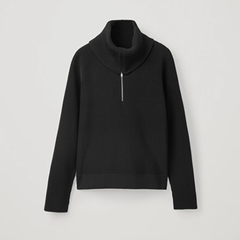 COS 拉链翻领黑色毛衣