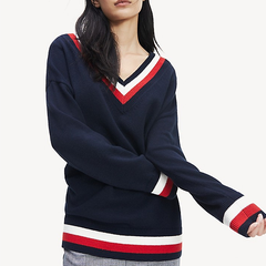 Tommy Hilfiger 条纹 Logo V 领毛衣