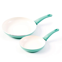 1组免邮!【中亚Prime会员】GreenLife SOFT GRIP系列 蒂芙尼蓝软握把陶瓷平底不粘锅煎锅套装 17cm+25cm