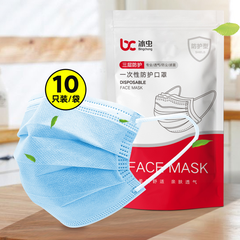 【百亿补贴】浙大冰虫 一次性三层防护口罩 10只