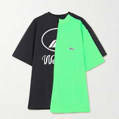WE11DONE 大廓形不对称拼接印花纯棉平纹布T恤