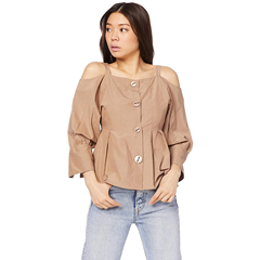 3件9折!【中亚Prime会员】Snidel 气质一字纽扣吊带露肩灯笼袖衬衫 SWFB191088