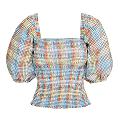 【新客首单*18%】佟丽娅同款!GANNI 泡泡纱格纹女式衬衫