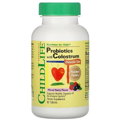 热销好价!【6.6折】Childlife 含初乳的益生菌 混合浆果味咀嚼片 90 片