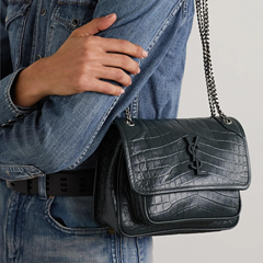 必入特殊色!【8.3折】SAINT LAURENT Niki Baby 褶皱仿鳄*纹皮革迷你单肩包