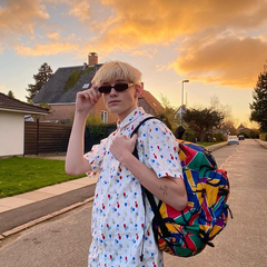 蓝色印花双肩包