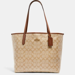 降价!Coach City Tote 蔻驰 奶茶色老花托特包