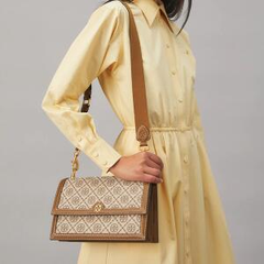Tory Burch 汤丽柏琦T MONOGRAM老花单肩包 棕色