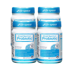 Life Space 320亿成人活性益生菌胶囊 60粒 调节肠胃/增强*力 4瓶装