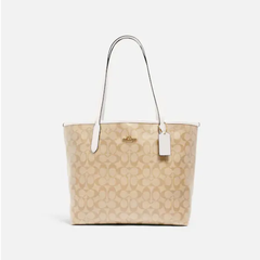 补货!COACH 蔻驰 City 女款白边奶茶老花托特包