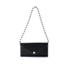 【22春夏新品】GANNI 女士黑色环保*皮革搭链钱包单肩包