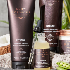 Grow Gorgeous 由内而外照顾你的秀发,Grow Gorgeous不只在乎秀发外在的光泽与柔顺,更解放秀发潜力改善头皮健康、促进头发生长。增发精华富含尖端科技成分,使用后能明显感受头发增长、增量,经过科学证明咖啡因是能解决头发稀疏的成分,Grow Gorgeous的产品添加6%咖啡因能够有效减少脱发。 轻盈的清洁护发素拥有极致多重功效,专业帮助秀发健康闪耀。清洁护发素系列不添加任何损害发质的化学成分,抛弃使用活性剂的传统清洁方式,让洗发过程完全不伤害毛鳞,为秀发带来干净、柔顺与光泽。