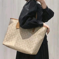 补货!COACH 蔻驰 City 女款奶茶色老花托特包