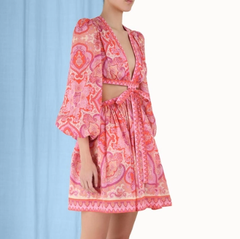 Zimmermann 2023夏季新款 Halcyon 系带露腰迷你连衣裙